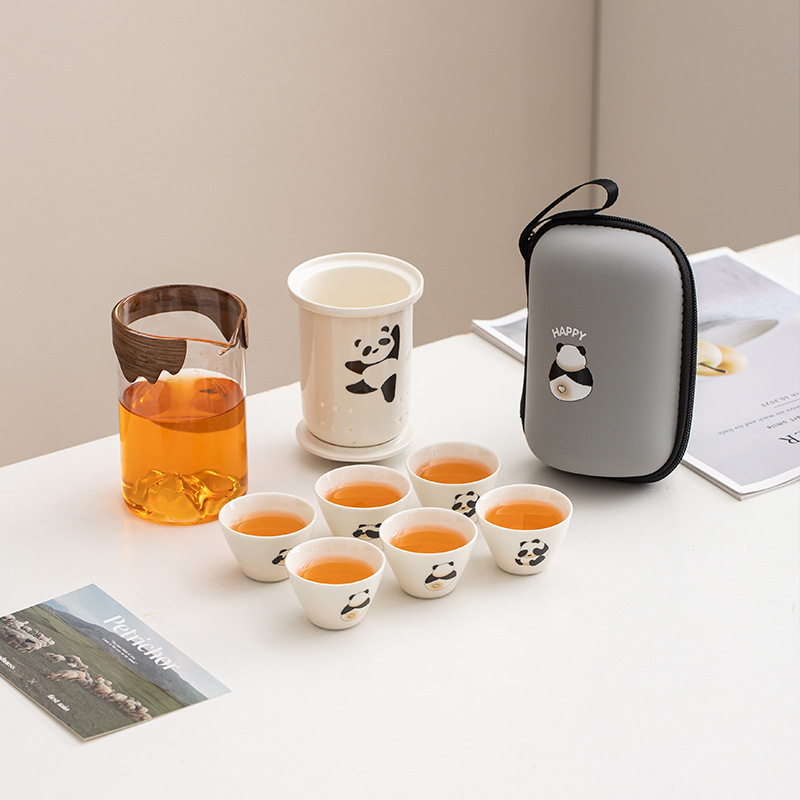 トラベルティーセット グラス アウトドア クイックカップ 1ポット 6カップ ビジネスギフト セラミックティー カスタムロゴ