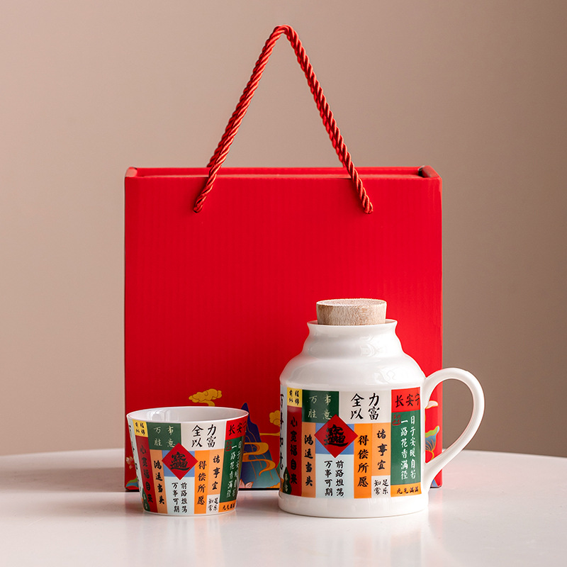 羊脂翡翠白磁小さな魔法瓶ティーセット文化的で創造的なシチューポット蓋付きティーカップクリエイティブギフトカスタムロゴ