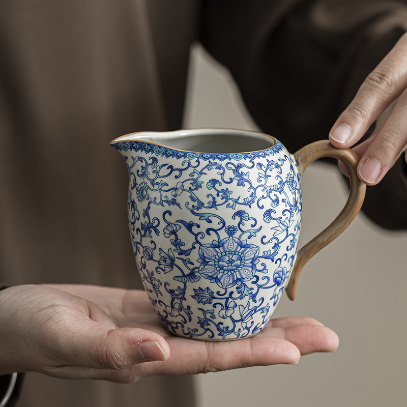 汝窯蓮の枝付き公道カップセラミック青と白のフルカラー茶海アンティーク茶ディスペンサー茶室茶空間カスタムロゴ