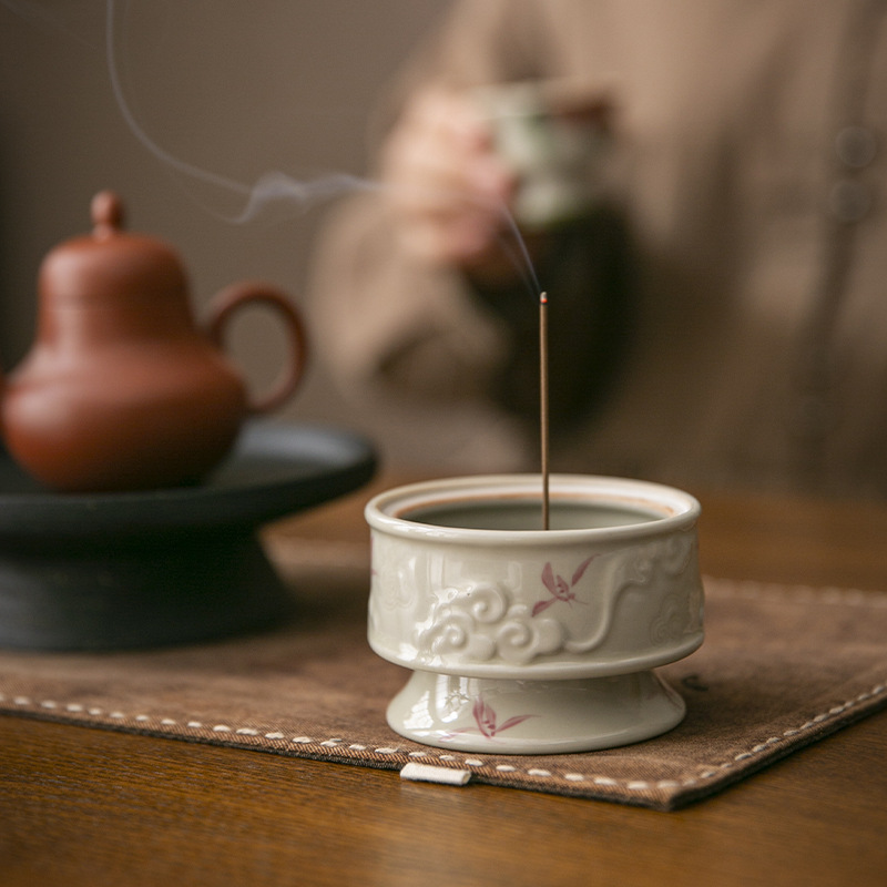 草木灰香炉陶磁器家庭用室内檀香炉置物創意盤香線香道茶芸薫香卸売り