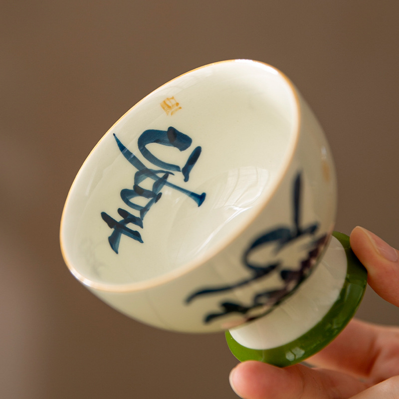草木灰手書き書道茶杯陶磁器主人杯高足杯品茗杯家庭用茶杯個人がコップを遊ぶ