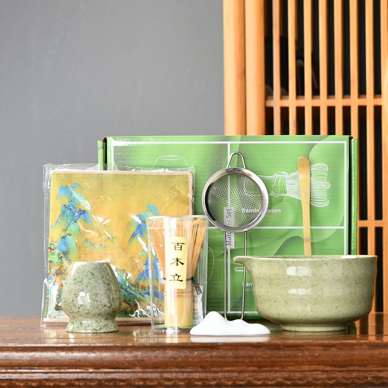 越境日本式茶立百本立抹茶碗茶さじセット陶磁器置き器点茶道具カスタムロゴ