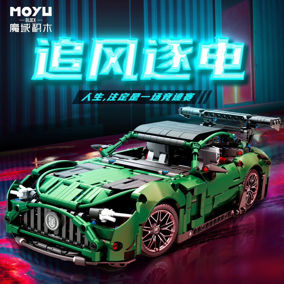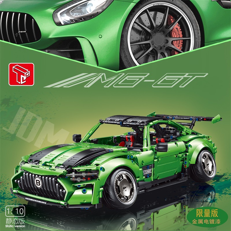 泰高楽t 5019電気メッキ限定版騒緑スポーツカーの男の子の益智は組み合わせて小さい粒子の積み木を挿します。
