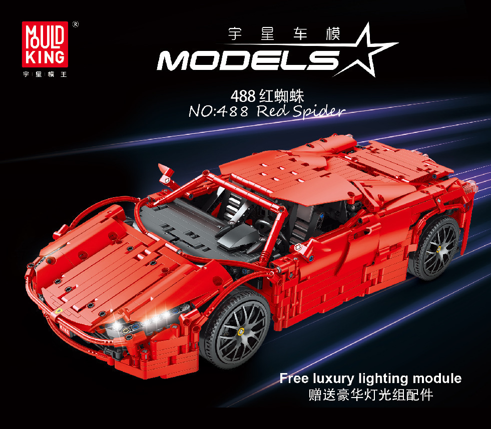 宇星13048紅蜘蛛488リモコンスポーツカーの組み立て積み木模型成人プレゼント自動車少年玩具