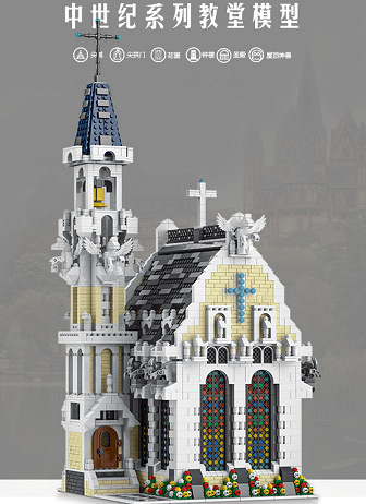 モデル2022新商品033006中世シリーズの教会モデルの小粒は積み木の子供のおもちゃを組み合わせています。