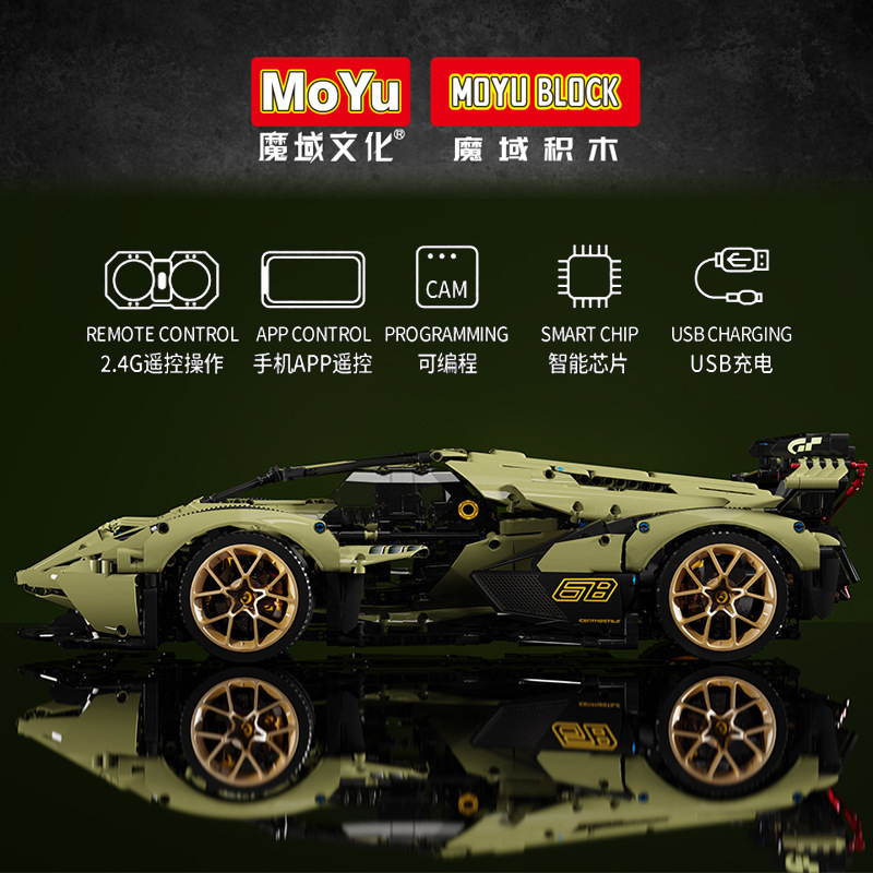 魔域文化MY88001林宝堅尼v 12緑牛概念スポーツカー模型は小さい粒子の積み木のおもちゃをつづり合わせます。