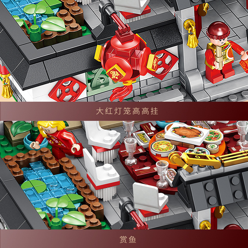 聚航6002街景シリーズ時間屋建築模型人小顆粒高難度組立積み木玩具
