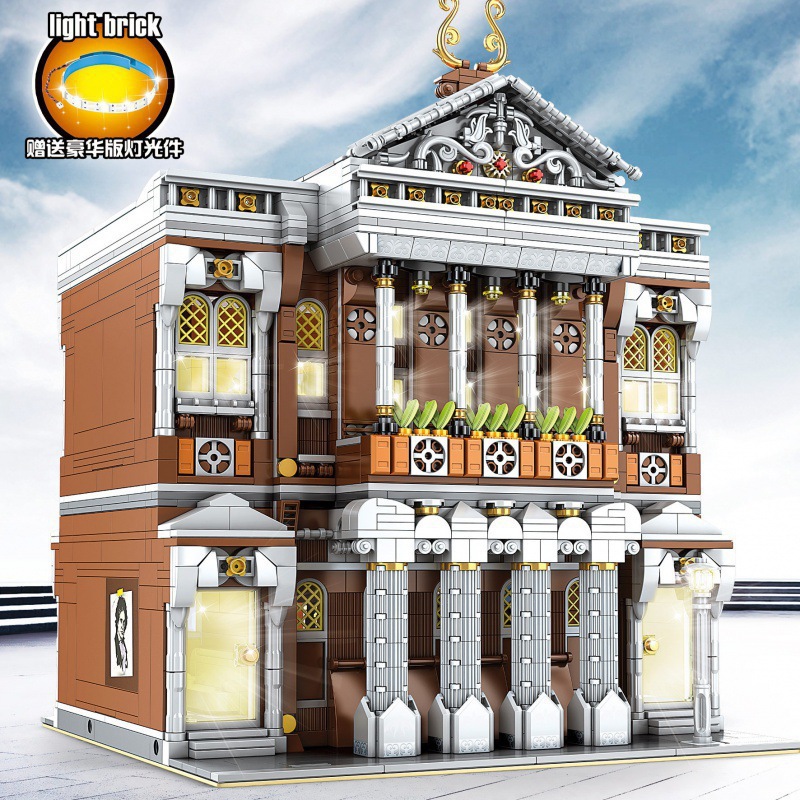 宇星16032ストリートビュー照明版小城演奏庁建築模型成人組立小粒積み木玩具