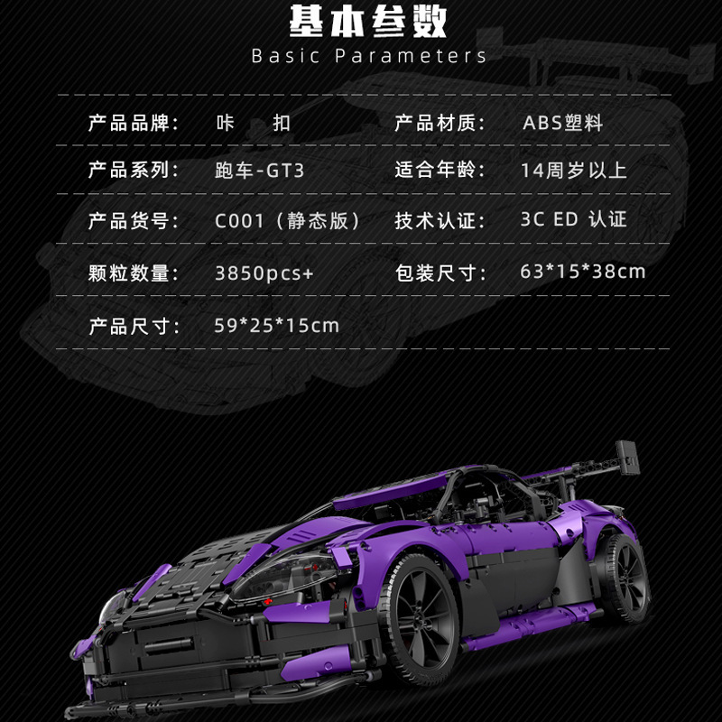 Kケース10304科学技術機械シリーズ法力458赤いスポーツカーの組み立て自動車模型積み木玩具