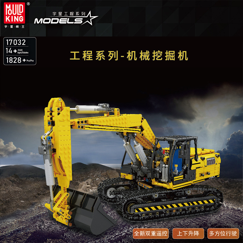 宇星17032機械工事車シリーズ電動APPリモコンショベルの組み立て積み木玩具モデル