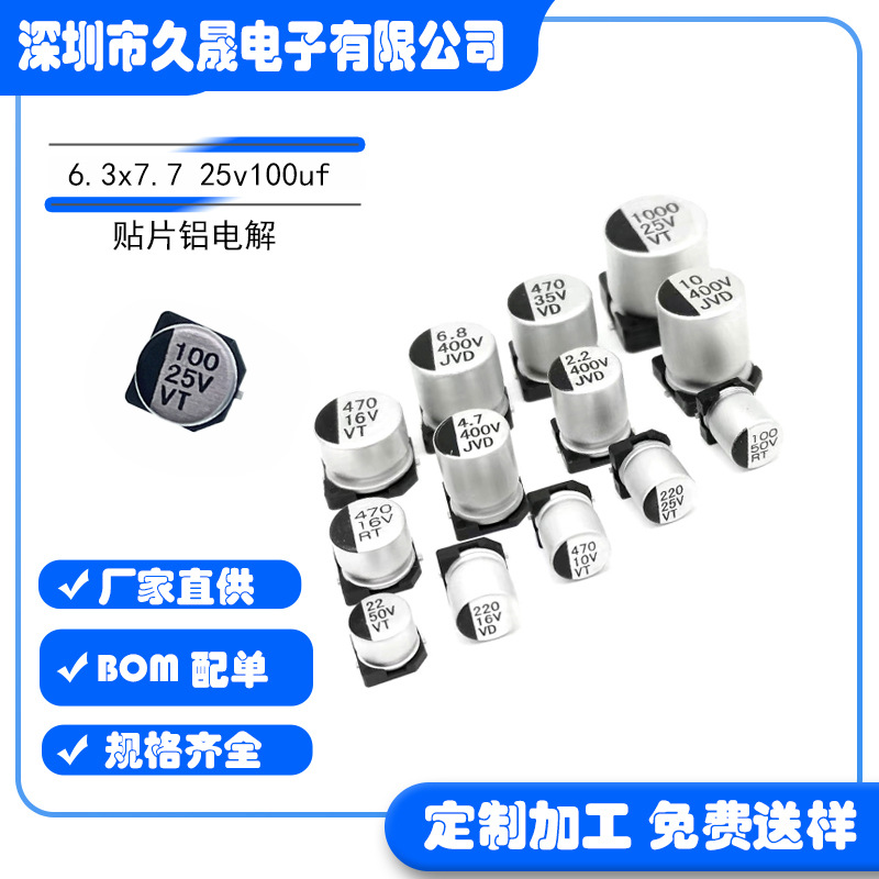 メーカー25v100uf25v 6.3x7.7 vtチップアルミ電解コンデンサチップ電解コンデンサスポット