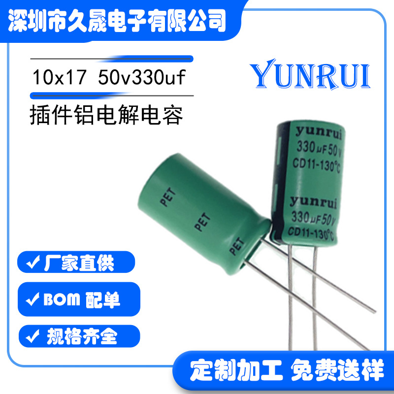 プラグインアルミ電解コンデンサ YURUI 10x17 50v330uf 高温耐性 130 ℃ 長寿命コンデンサ