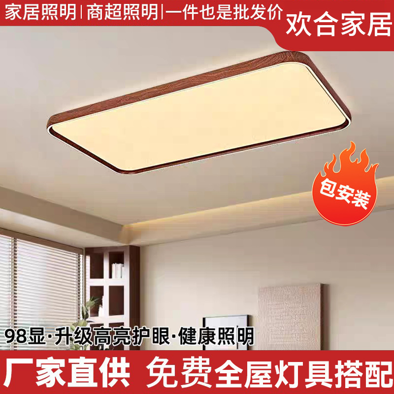 中山照明ウォールナットカラーホールメインライトシンプルなフルスペクトル寝室ライト書斎アンティークリビングルームシーリングライト