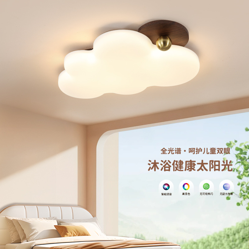 中世スタイルの寝室ランプクラウドマスターベッドルームシーリングランプフレンチクリームクルミ木目調目の保護子供部屋中山ランプ