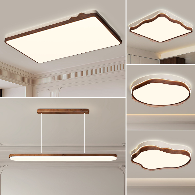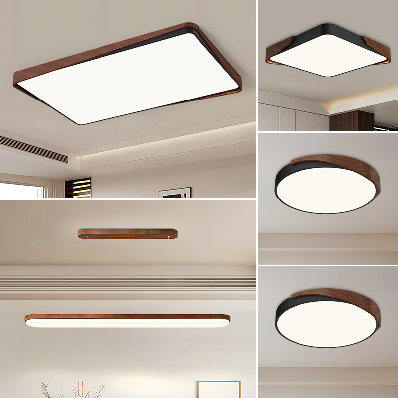 新しい中国風のレトロな超薄型フルスペクトル目の保護リビングルームメインライト日本スタイルのミニマリストわびさびスタイルウォールナット木目調シーリングライト