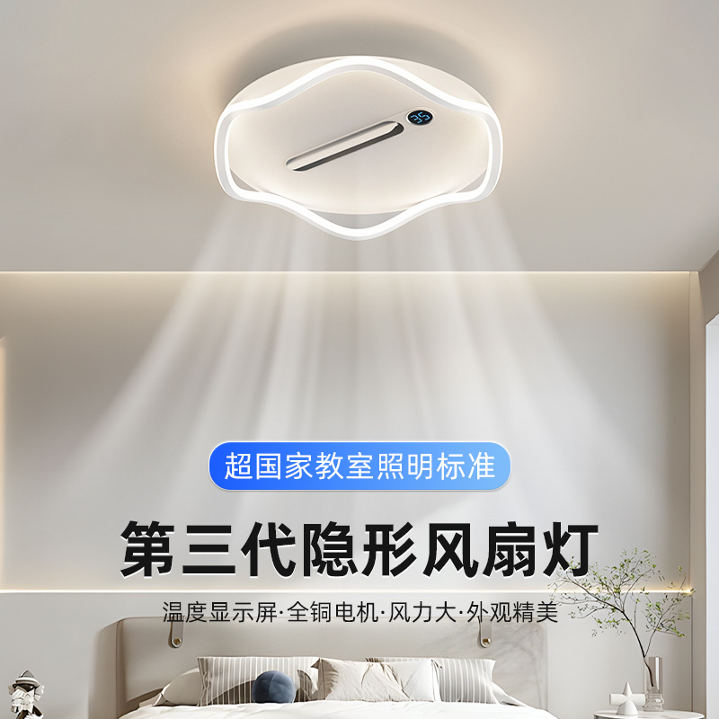 マスターベッドルームファンライトモダンでシンプルな雰囲気の家庭用目に見えないファン付きサイレントオールインワン2025新しいシーリングライト