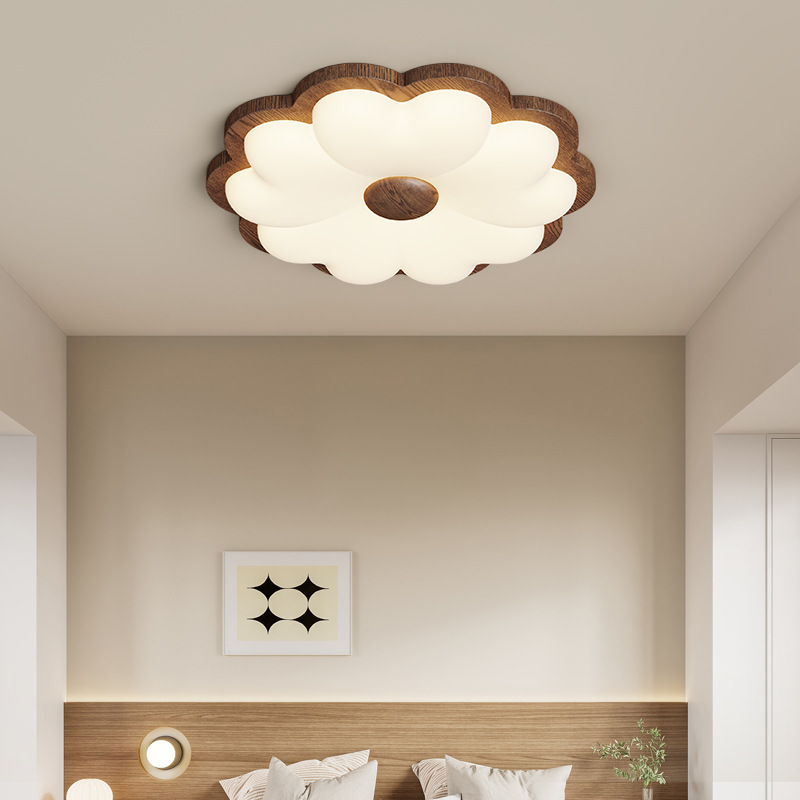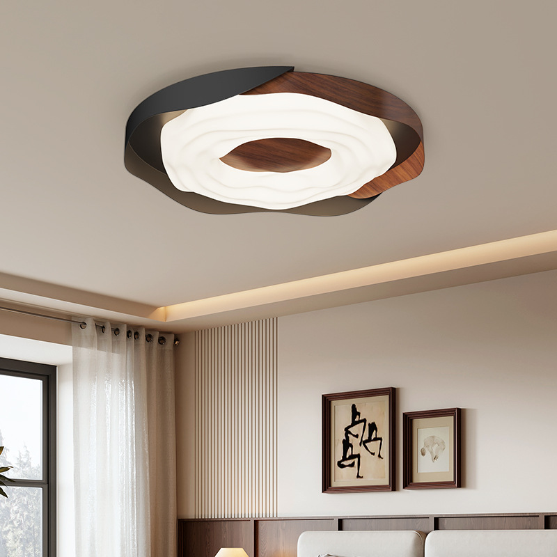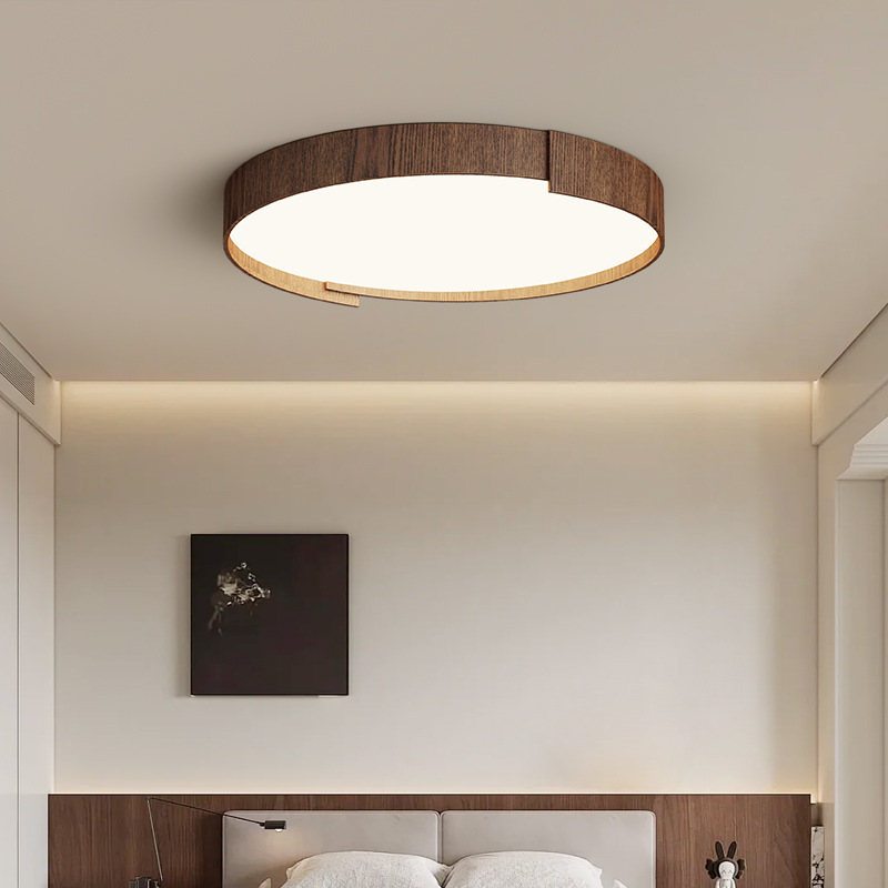 レトロなスタイルの寝室のシーリングランプ、ファッショナブルでパーソナライズされたモダンなウォールナット木目調ラウンドフルスペクトル目の保護リビングルームランプ