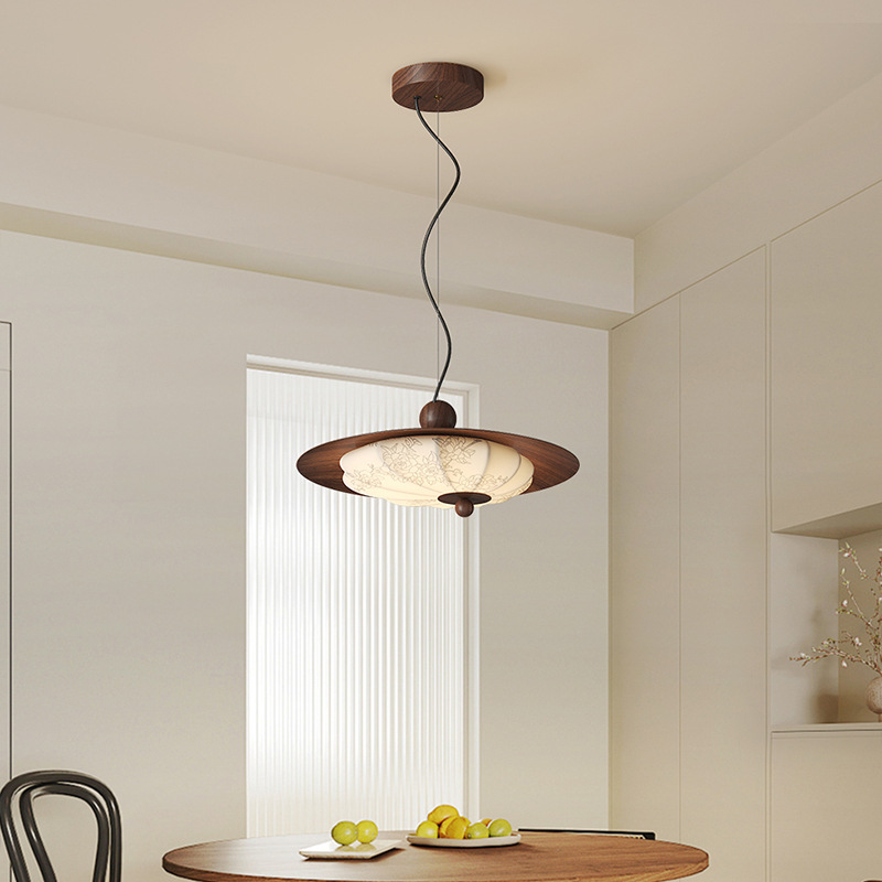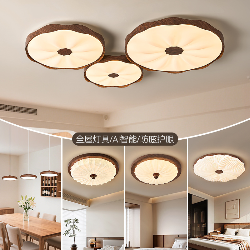 フルスペクトル無垢材ウォールナットカラー和風メインランプシーリングランプ北欧クリームスタイルモダンシンプルリビングルームランプ
