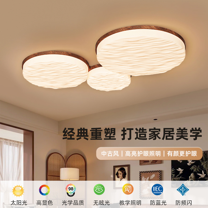 中世スタイルのリビングルームの天井ランプフルスペクトル寝室の目の保護子供部屋ランプクラウドウォールナット新しい中国風のホールランプ