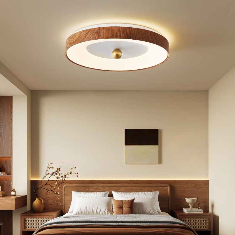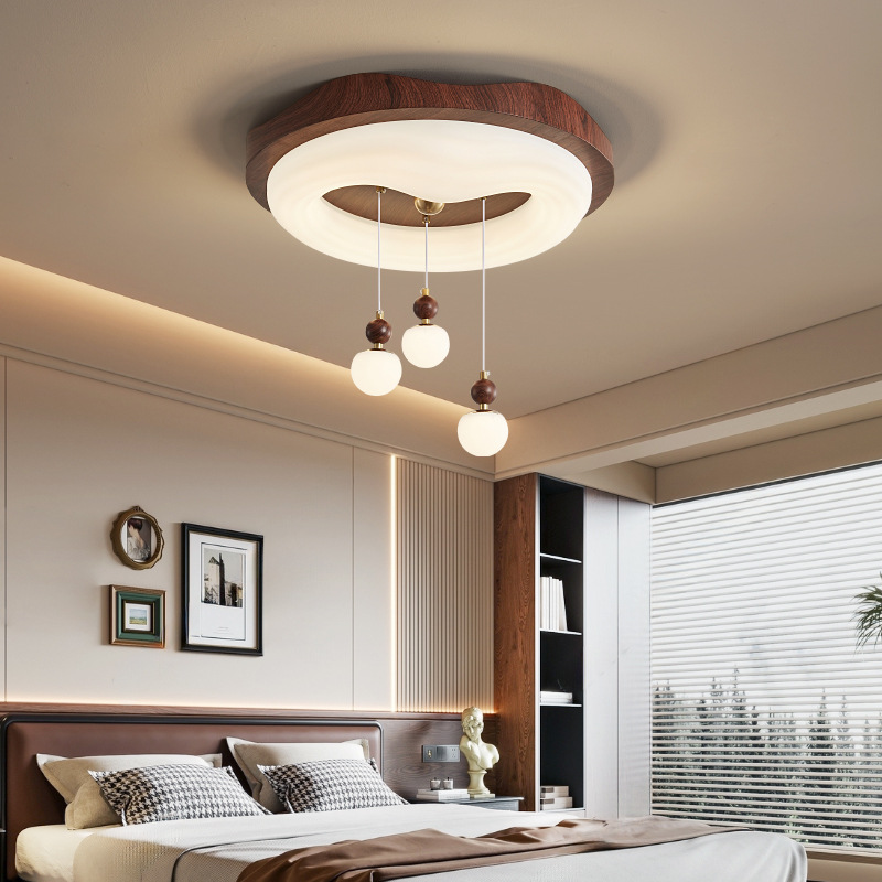 フレンチライト高級ベッドルームランプ、暖かくロマンチックなルームマスターベッドルームランプ、無垢材ウォールナットカラーシーリングランプ