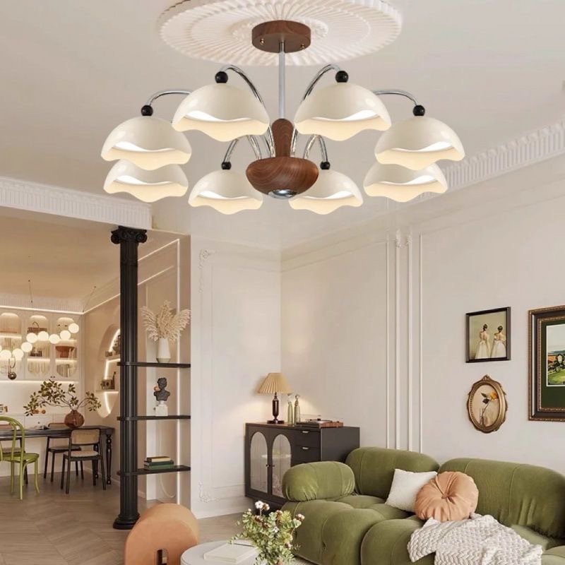 花びら天井フレンチミッドセンチュリースタイルハイエンドアートルームランプ日本のレトロな無垢材生地の寝室のランプ