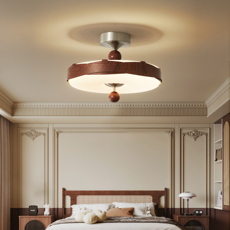 寝室のシーリングランプ中世のわびさびスタイルクリエイティブラウンドウォールナットカラーレトロフレンチクリームスタイル書斎ランプ