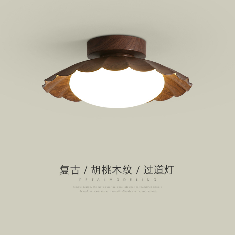 中世のわびさびスタイルの廊下通路ライトモダンなシンプルなパーソナライズされたデザインの空飛ぶ円盤シーリングライトクルミ色のバルコニーライト