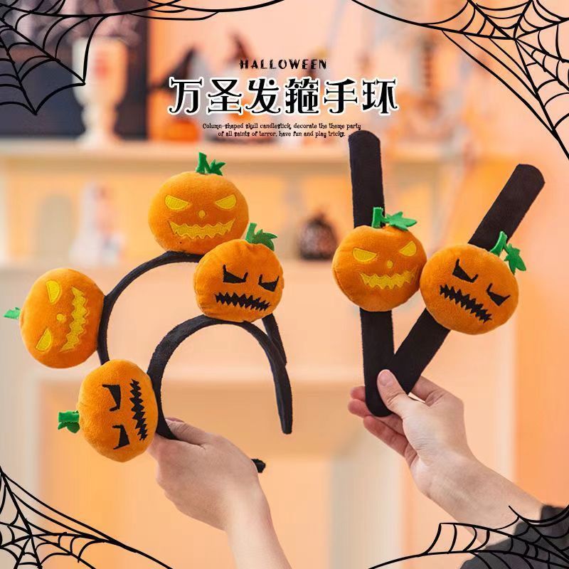 ハロウィーンの頭飾りはカボチャの人形のカチューシャの女性が顔を洗ってかわいいカチューシャの髪飾りを飾って子供のアクセサリーを飾っています。