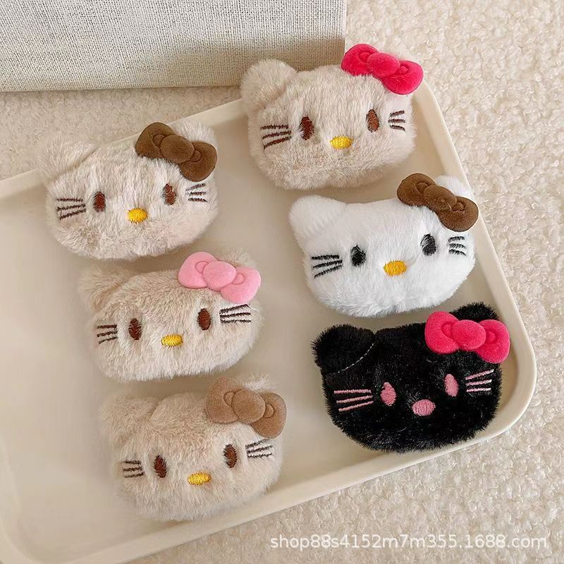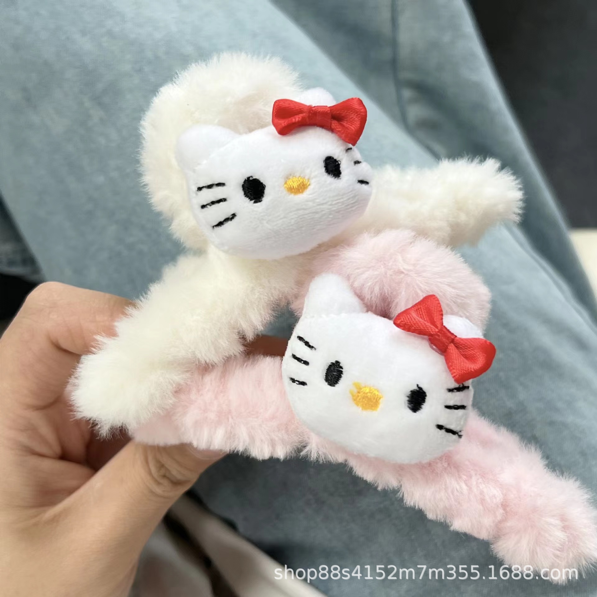 ぬいぐるみのかわいいサンリオは、新しいkt猫漫画のぬいぐるみの髪飾りの少女の心の秋冬のネットの髪のクリップの女性の装飾品をつかみます。