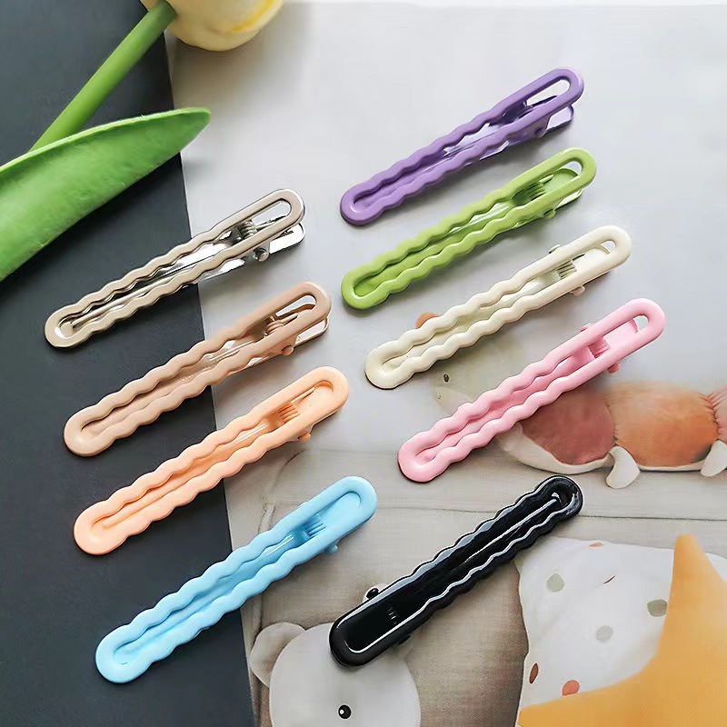 Ins風キャンディー色前髪サイドクリップ光沢面無痕波一字クリップカードdiyクリームゴムクリップ部品