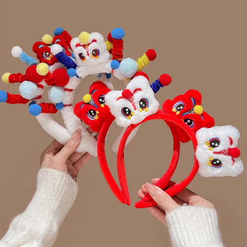 新年のタイプの目を覚ますライオンのパチパチと子供の手環漫画の腕のヘアバンドのツイストスティックの赤いお祝いの贈り物のパチパチ