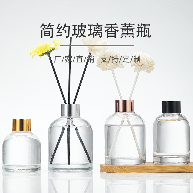 卸売り無火アロマボトルガラス透明円形精油空瓶トイレ室藤条ドライ花浮遊花香水瓶