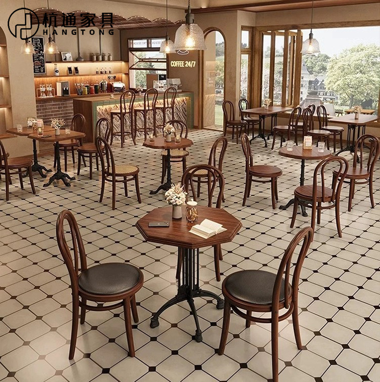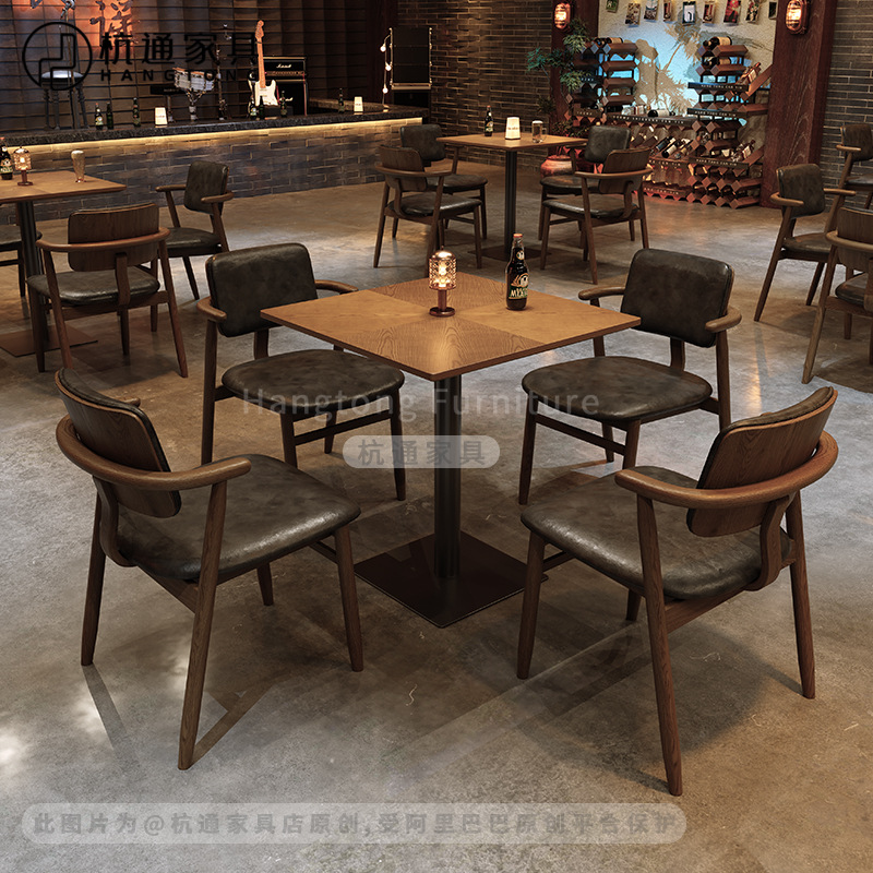 レトロな喫茶店のテーブルと椅子の組み合わせアメリカ式居酒屋バーの実木テーブルのレストランの食事をしましょう。