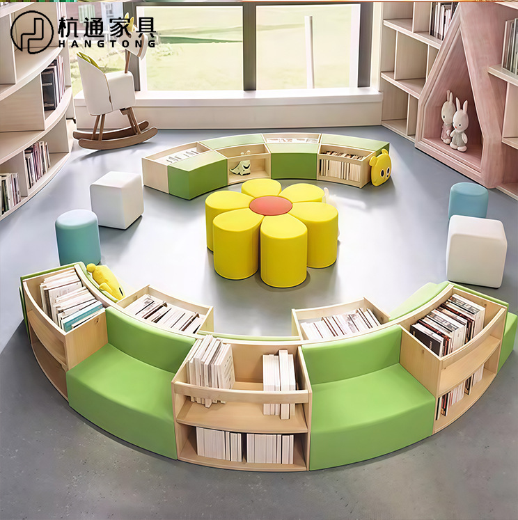 異形アーチ型図書館閲覧室創意ソファー組み合わせ学校幼稚園読書区収納本棚ソファー