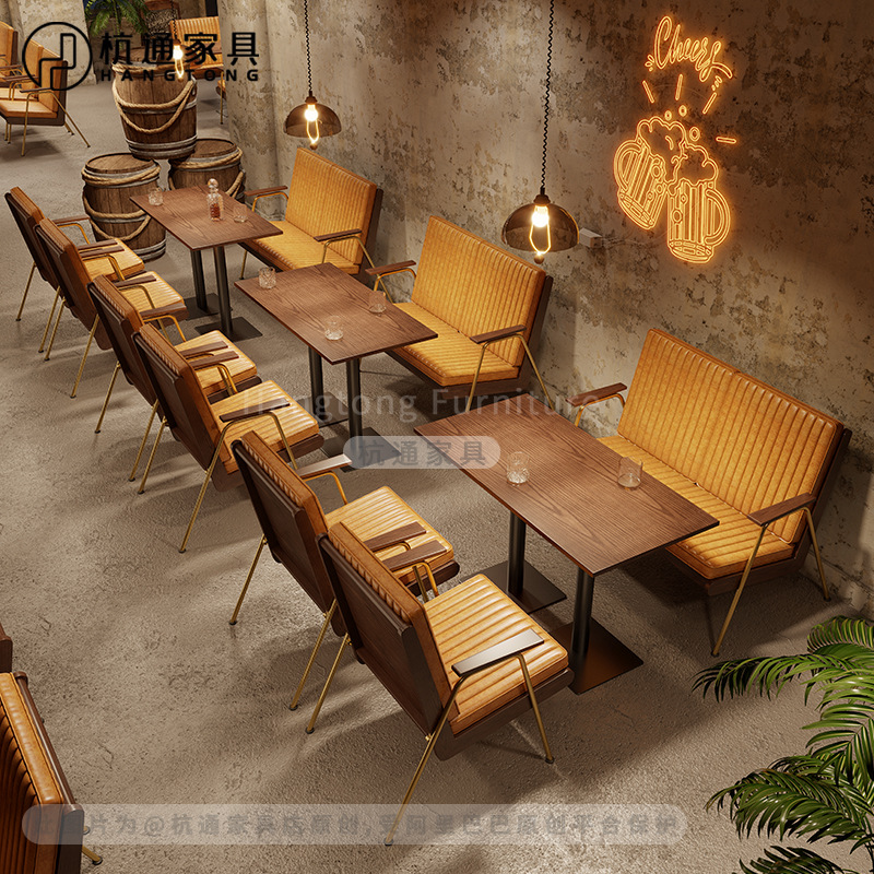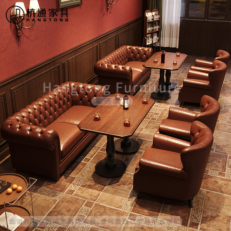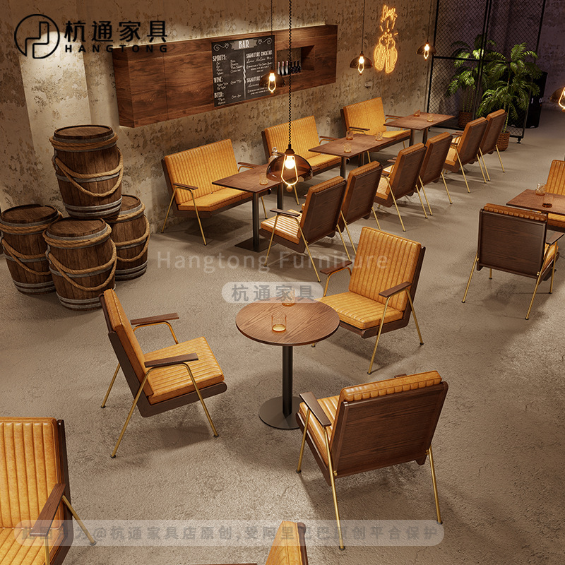 酒場清吧卡座ソファー西レストランテーマレストランテーブルと椅子の組み合わせバーカフェオーダーメイドソファ商用