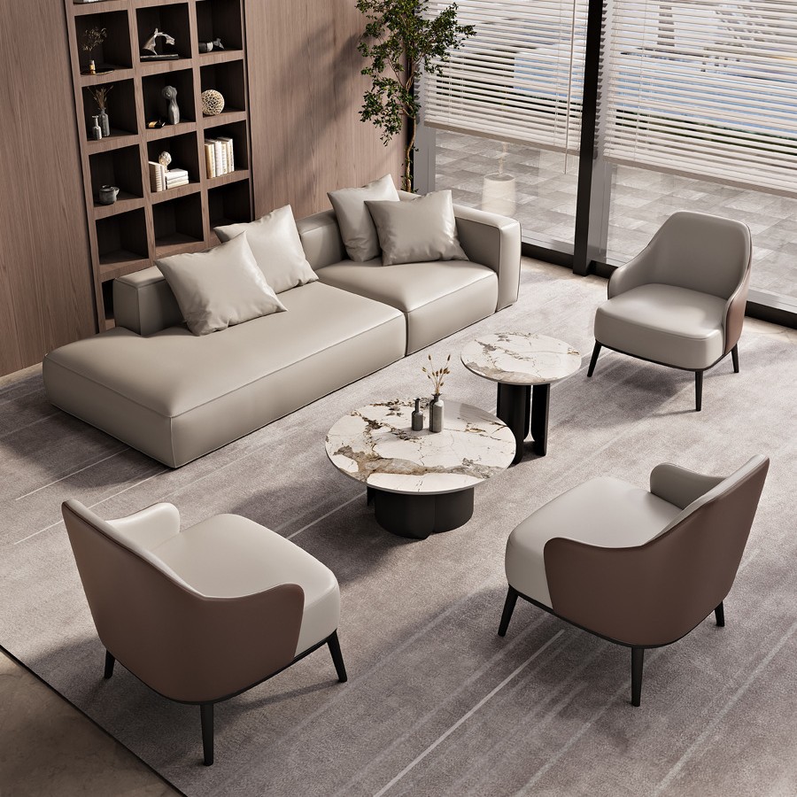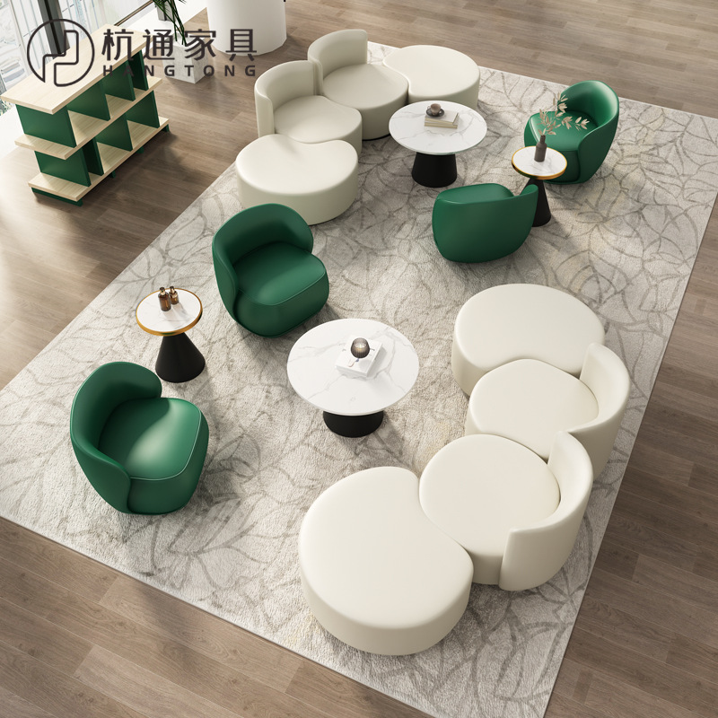 ホテルのロビーの休憩エリアのカードのソファーの売り場で、テーブルと椅子のレジャークラブのソファーのお茶の組み合わせを相談します。