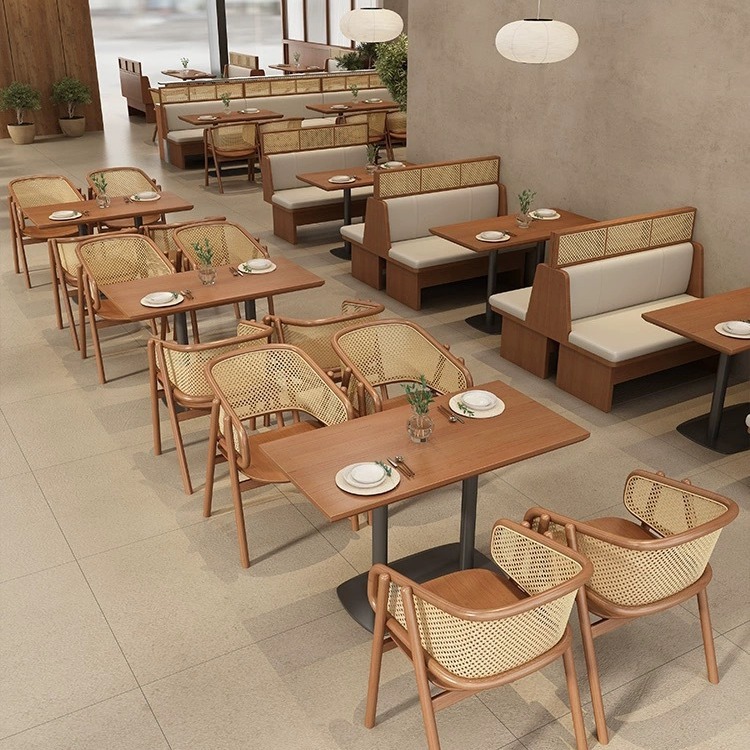 寂風西レストラン藤卡座焼肉店レストランテーブルと椅子の組み合わせレストラン実木編藤卡座ソファ