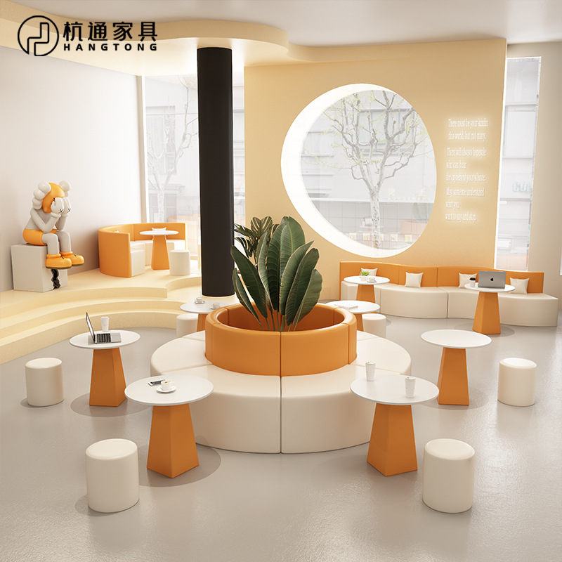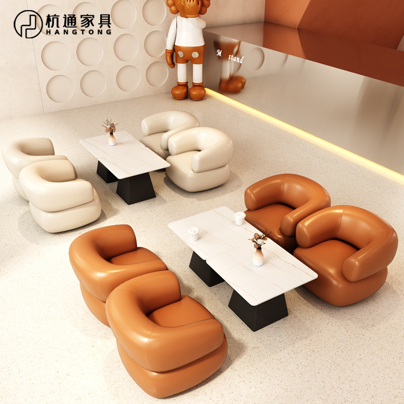 ネット赤喫茶店ミルクティー店レジャーソファクリーム風スイーツ店商談休憩エリア受付テーブルと椅子の組み合わせ