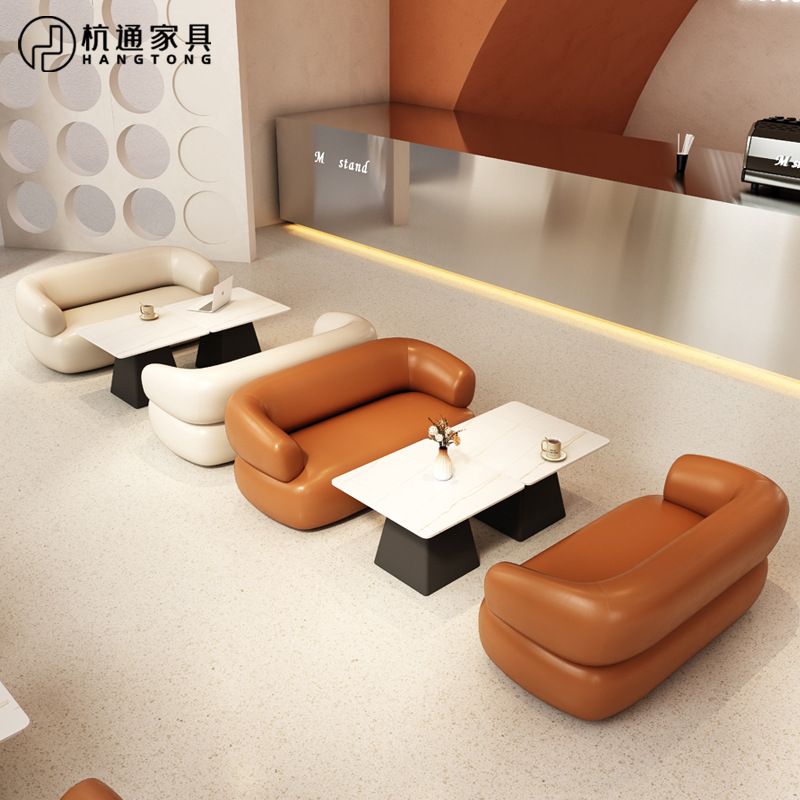 ミルクティー店カフェのシンプルなソファセットのデザート焼き店の販売部は受付エリアのレジャーテーブルと椅子を交渉します。