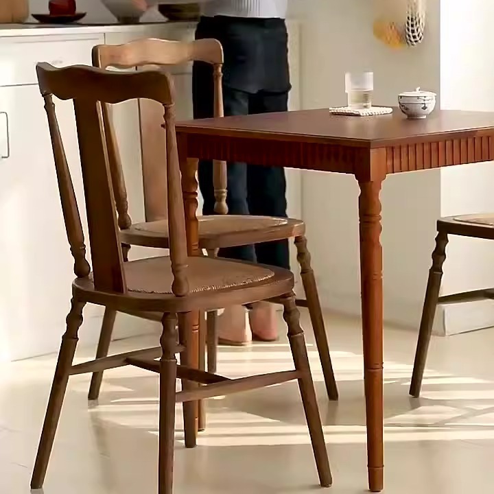 実木レトロ食卓カフェテーブルと椅子ミルクティー店清吧レストランと椅子の組み合わせ中古民宿小円テーブル