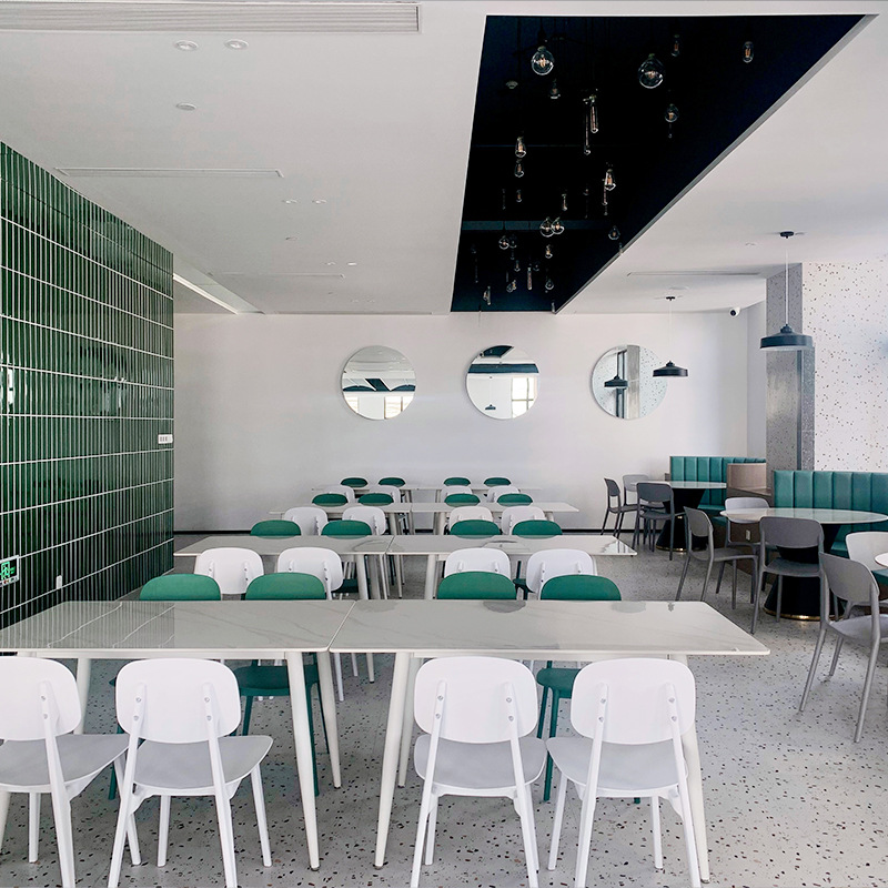 北欧のビル販売部の休憩エリアはテーブルと椅子の組み合わせを交渉します。