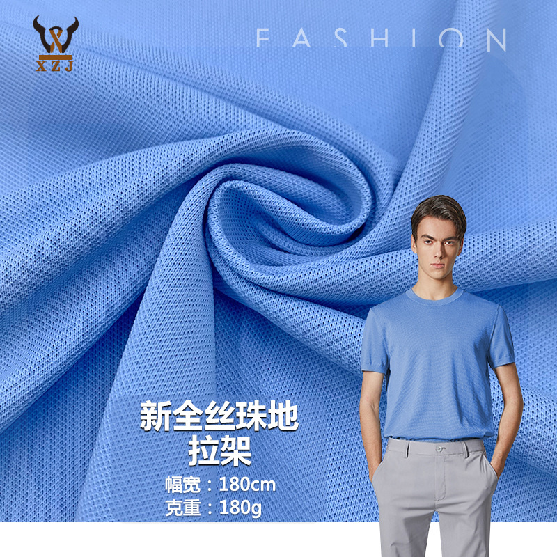 現物新全糸珠地引き架全ポリエステル弾力メッシュ布poloシャツビジネスカジュアルニット生地