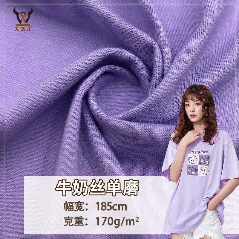 新型牛乳糸単磨ニット生地100d綿ポリエステル生地夏タイプのシャツtシャツファッション生地