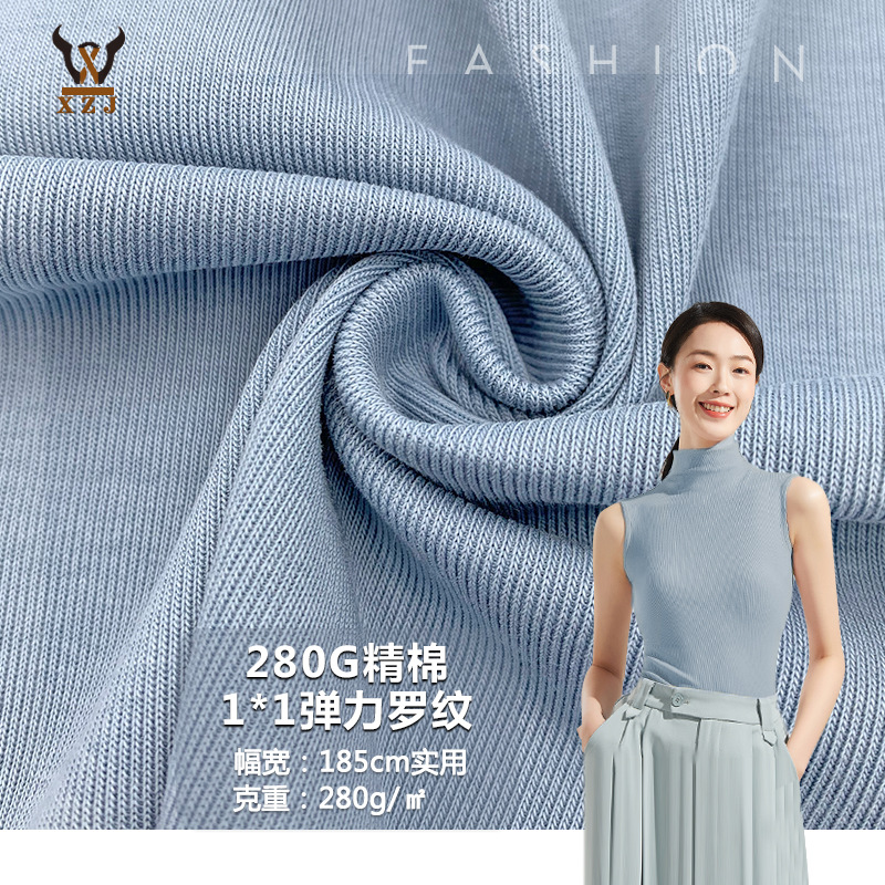 新商品280g精綿1*1弾力性のあるリブ綿ポリエステルのリブの底のシャツの春夏のストラップのベストは心のままに生地を裁断します。