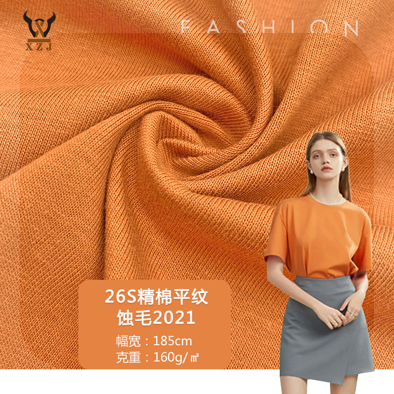 21s精綿平織り毛2021全綿汗布精練片面ニット生地tシャツ夏服ホームウェア生地