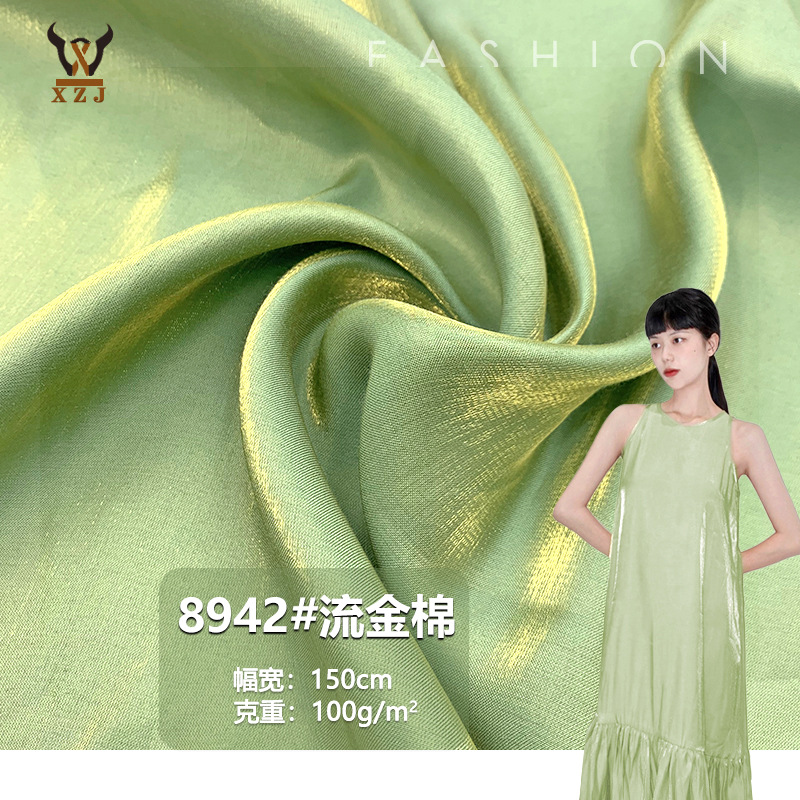 8942 # 流れるようなゴールデンコットン 100 グラムレーヨン混紡ファッション生地ゴールデンシルクグリッター織物衣装装飾生地