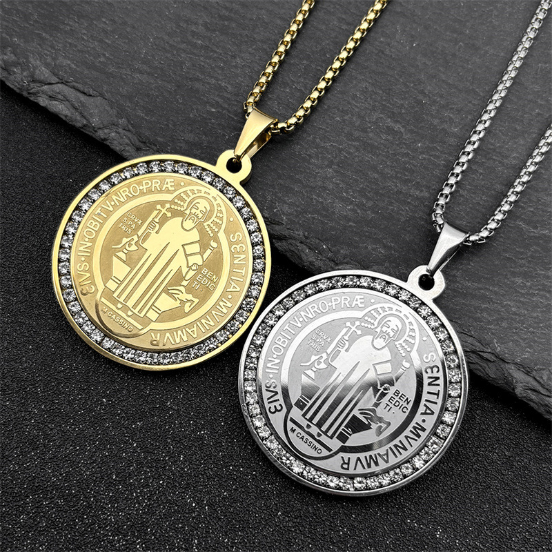 Temuクロスボーダー热い贩売ジェシカセントベネディクトペンダントネックレスレトロラウンドラウンド両面パターン信仰ネックチェーンジュエリー