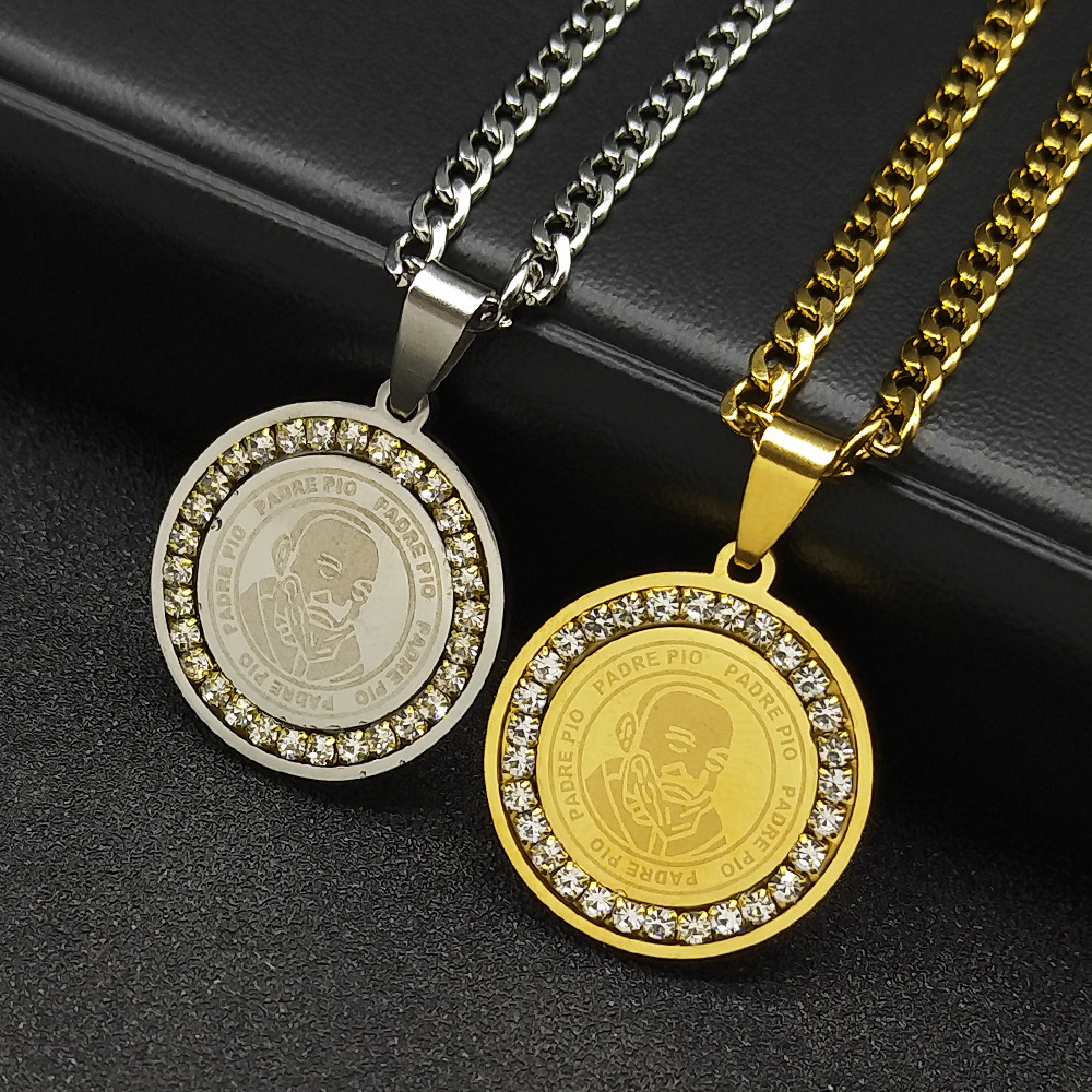 クロスボーダー新作Padre PIOネックレスステンレスアクセサリー高級感ダイヤモンド中性風ヒップホップペンダント
