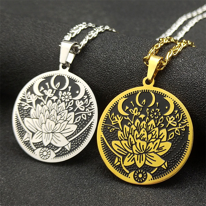 クロスボーダーTemuホット販売速売通人気ステンレスネックレス花月模様チタン鋼ネックレスペンダントアクセサリー