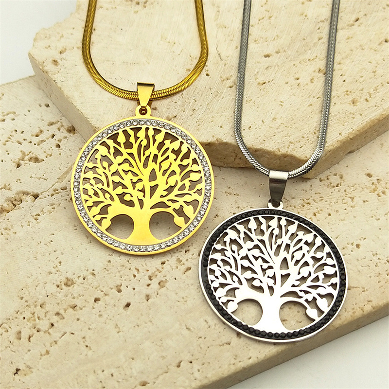 クロスボーダー欧米新型ステンレスネックレスクロス生命の木中性風箱チェーンペンダントアクセサリー